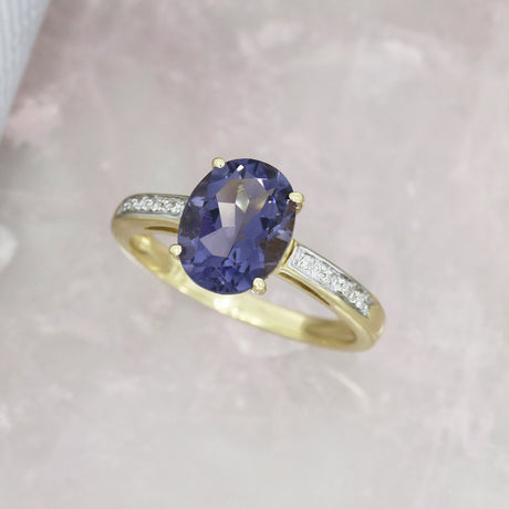 Pre Owned 9ct Yellow Gold Oval Iolite & Diamond Dress Ring