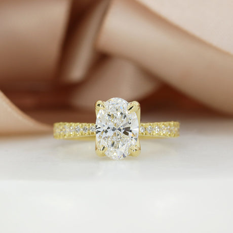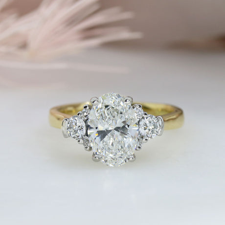 18ct Certified Oval Brilliant Cut Lab Grown Diamond with Stone Set Shoulders Total 2.29ct E VS1
