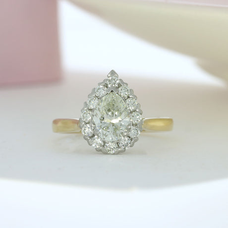 £1,350.00Unit price /Unavailable18ct Gold & Platinum Certified Pear Shape & Round Lab Grown Diamond Cluster Ring Total 1.46ct