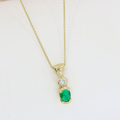 18ct Emerald & Diamond Two Stone Pendant on 18ct 18" Anchor Chain