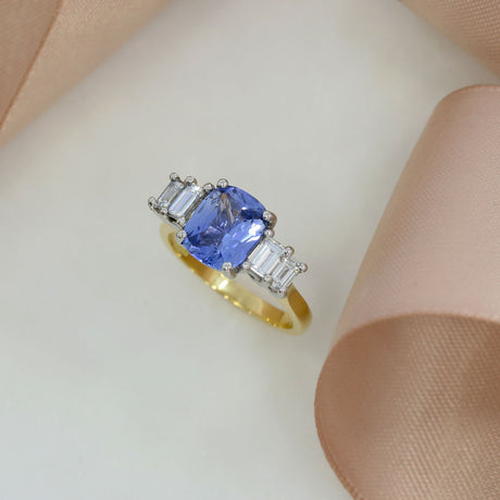 £1,895.00Unit price /Unavailable18ct Gold & Platinum Cushion Shape Sapphire 2.60ct & Baguette Diamond 0.80ct Ring