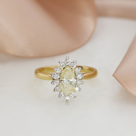 £3,295.00Unit price /Unavailable18ct Gold & Platinum Natural Marquise Shape Diamond Cluster Ring Total 1.25ct