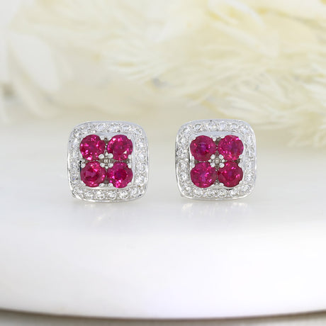 £1,275.00Unit price /UnavailablePre Owned 18ct White Gold Round Ruby & Diamond Earrings in a Square Cluster Setting