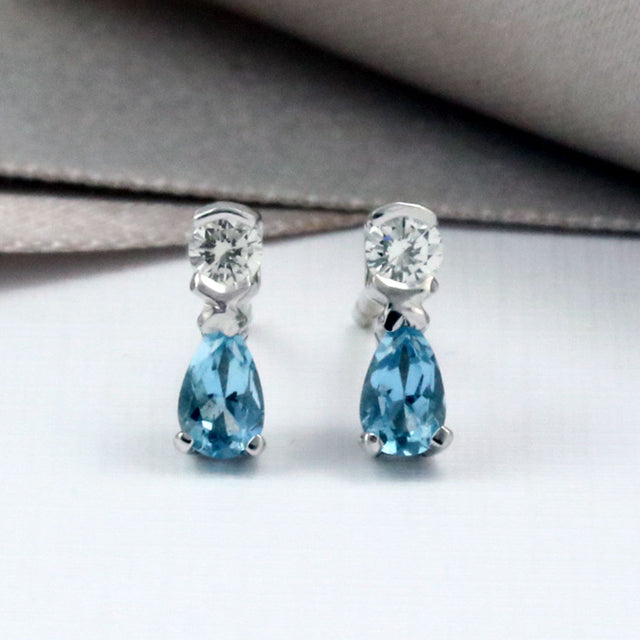 9ct White gold pear shape aquamarine and round diamond stud earrings