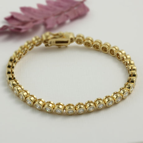 £2,295.00Unit price /Unavailable18ct Yellow Gold Round Rub Over Set Brilliant Cut Diamond Line Bracelet 0.89ct