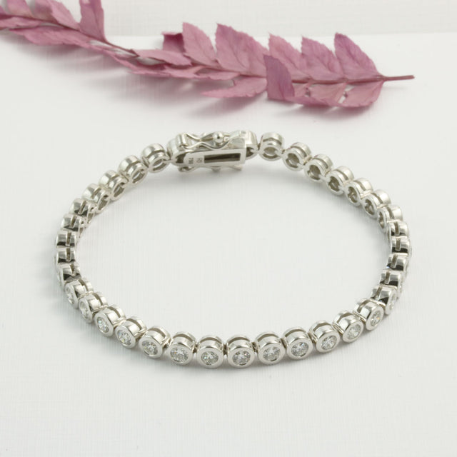 18ct White Gold Rub Over Set Diamond Line Bracelet