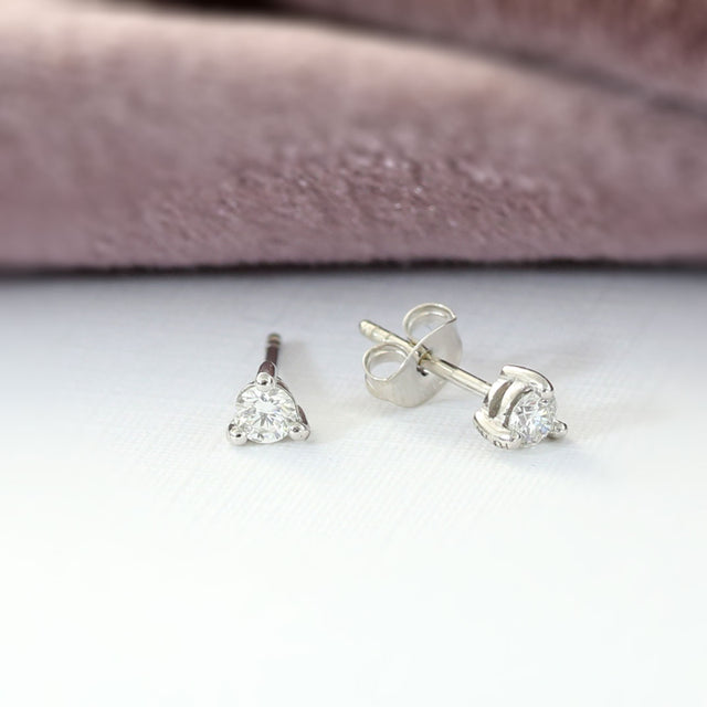 18ct White Gold 3 Claw Set Round Brilliant Cut Diamond Stud Earrings 0.20ct