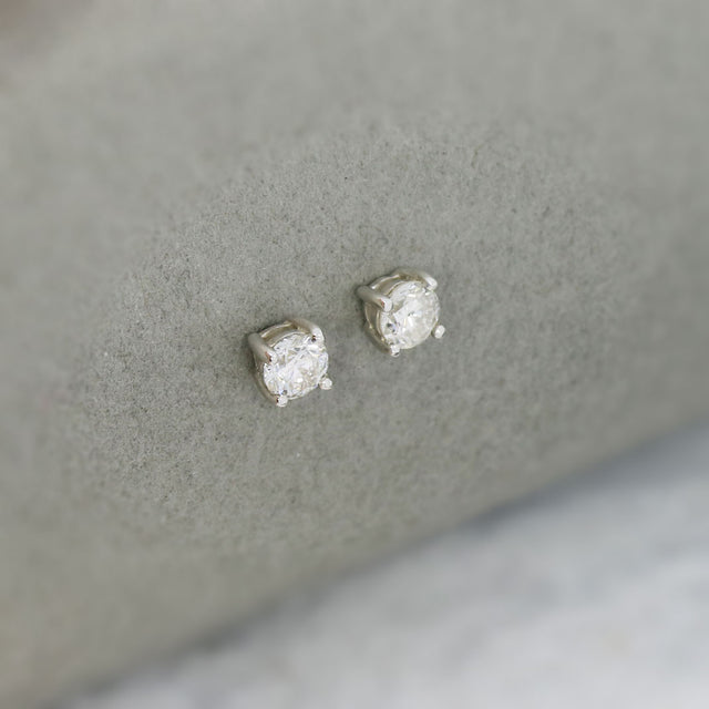 9ct White Gold Four Claw Set Brilliant Cut Diamond Stud Earrings 0.65ct