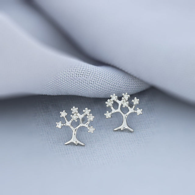 9ct White Gold Tree of Life Earrings Set With Diamonds, Post & Butterfly Fittings