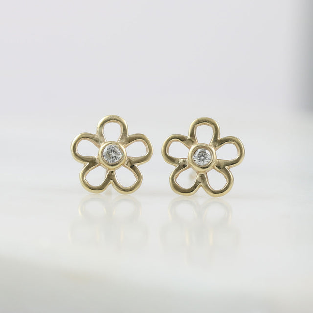 9ct Yellow Gold Daisy Earrings with Centre Diamond