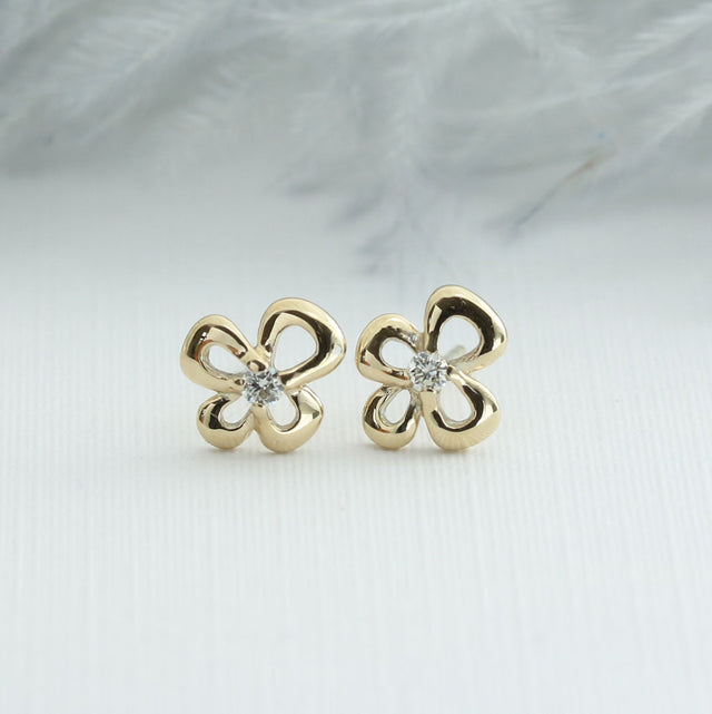 9ct Yellow Gold Flower Shape Stud Earring with Small Claw Set Diamond 0.07ct