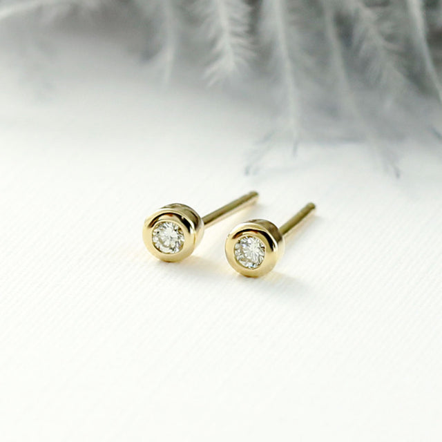 9ct Yellow Gold Small Rub over Set Round Brilliant Cut Diamond Stud Earrings 0.05ct