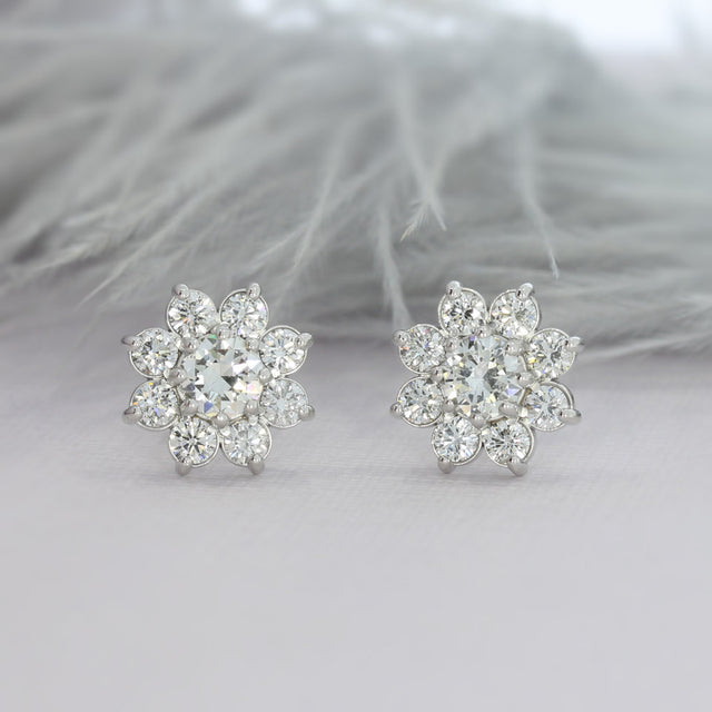 Pre Owned 18ct White Gold Flower Cluster Diamond Stud Earrings 2.74ct.