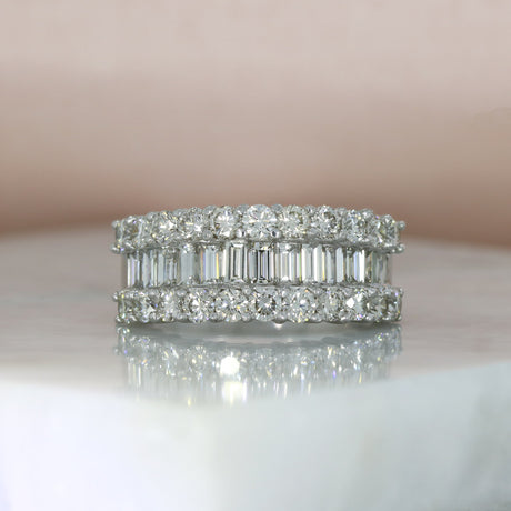Pre Owned 18ct White Gold Round Brilliant Cut & Baguette Diamond 2.92ct Vs-Si