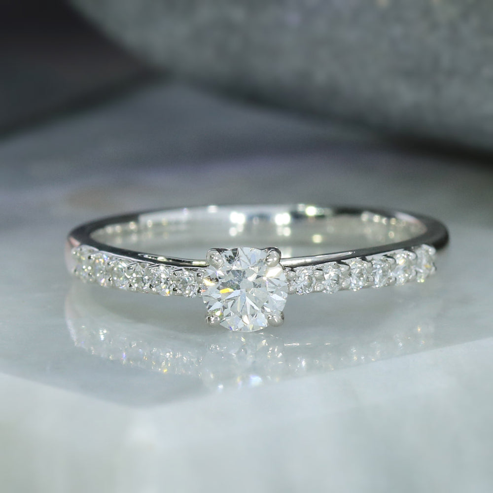 Platinum Diamond Solitaire Ring With Diamond Set Shoulders Total 0.50ct