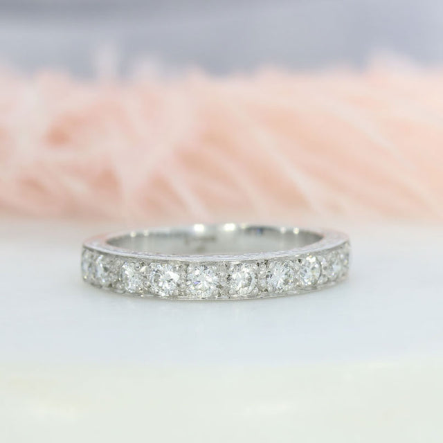 Pre Owned 18ct White Gold Pave Set 10 Stone Diamond Ring With Engraved Sides