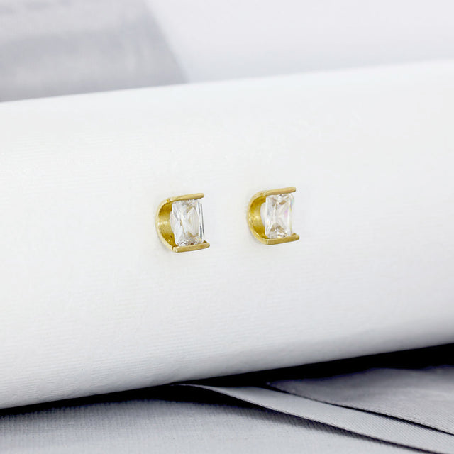 9ct Yellow Gold Stud Earrings with a Square Trap Set Cubic Zirconia
