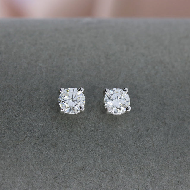 9ct White Gold 4 Claw Set Certified Round Brilliant Cut Laboratory Grown Diamond Stud Earrings 0.83ct