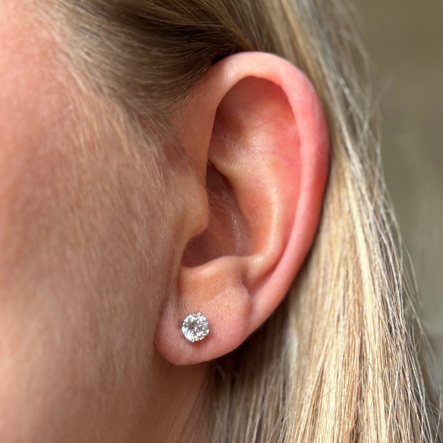 9ct White Gold 4 Claw Set Round Brilliant Cut Laboratory Diamond Stud Earrings Total 1ct D-F VVS-VS