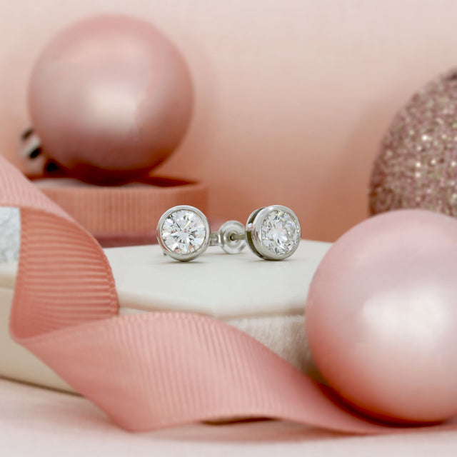 9ct White Gold Rub Over Set Round Brilliant Cut Laboratory Diamond Stud Earrings Total 2.03ct