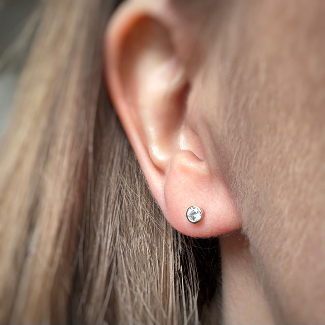 9ct White Gold Small Rub Over Set Laboratory Grown Diamond Stud Earrings 0.20ct