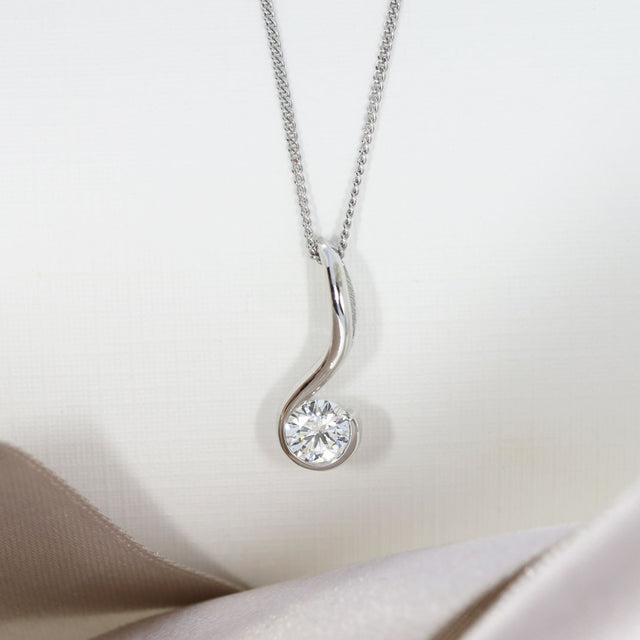 9ct White Gold Part Rub over Set Laboratory Grown Diamond Drop Pendant on a 9ct White Gold 18" Fine Curb Chain