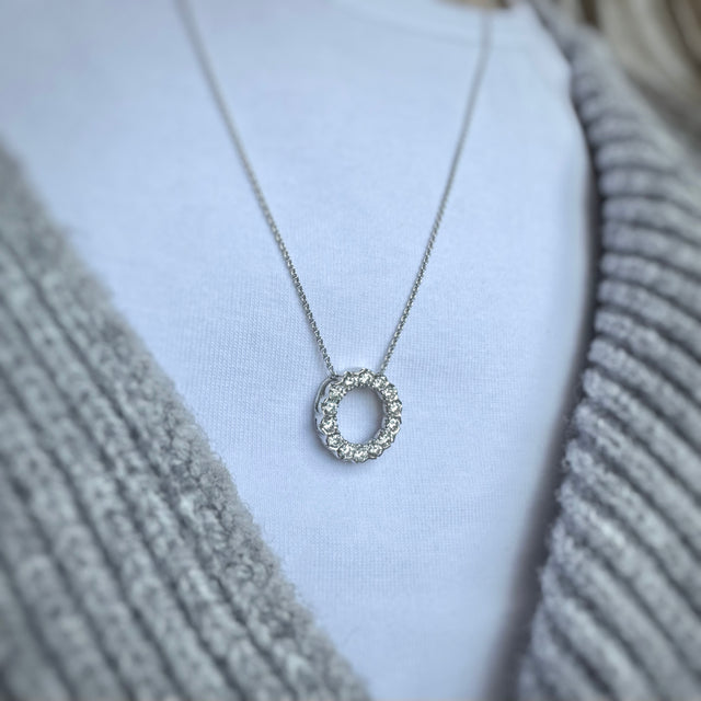 9ct White Gold Circle Pendant with Laboratory Grown Diamonds 0.80ct 20 Inch