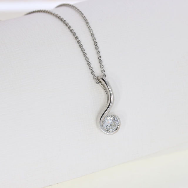 9ct White Gold Rub Over Set Swirl Style Drop Pendant with a Single Round Laboratory Grown Diamond 0.50ct on a 9ct White Gold 18" Anchor Chain