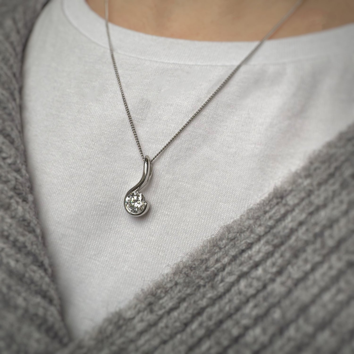 Platinum Rub Over Set Certified Lab Grown Diamond Solitaire Drop Pendant Approximate 1.00ct E VS1