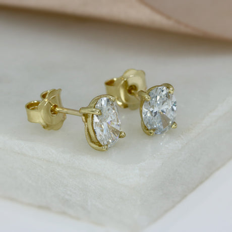 9ct Yellow Gold Oval Lab Grown Diamond Stud Earrings 2.11ct