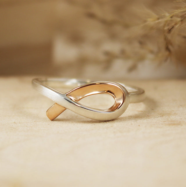 925 Silver Ribbon Style Ring with Rose Gold Accent