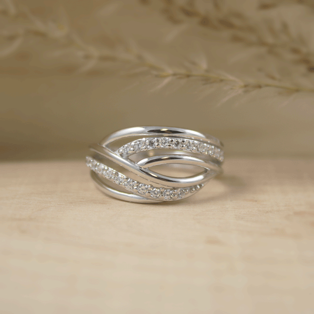 Silver Fancy Multi Row Ring with Cubic Zirconia