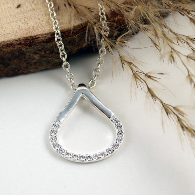 Silver Teardrop Pendant with Claw Set Cubic Zirconia to Bottom Half on an 18inch Silver Trace Chain