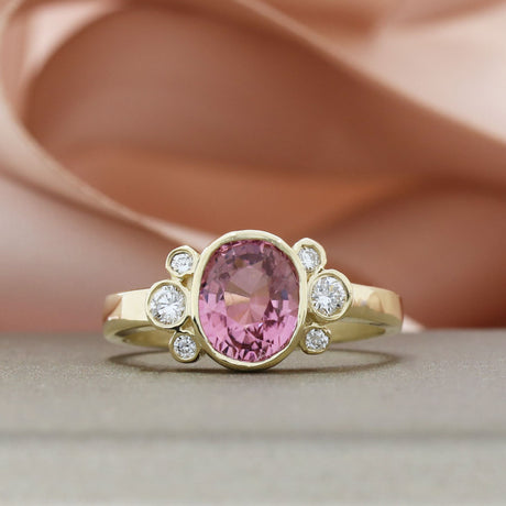 £1,635.00Unit price /Unavailable18ct Yellow Gold Oval Pink Tourmaline & Diamond Cluster Ring