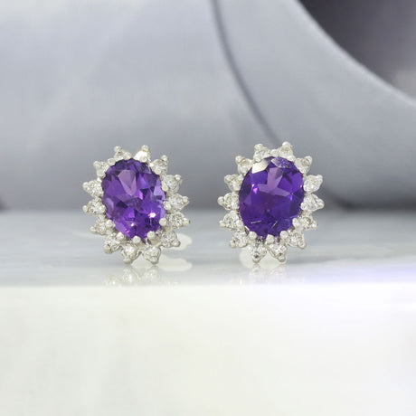 £195.00Unit price /Unavailable18ct White Gold Amethyst and Diamond Cluster Earrings 0.40ct
