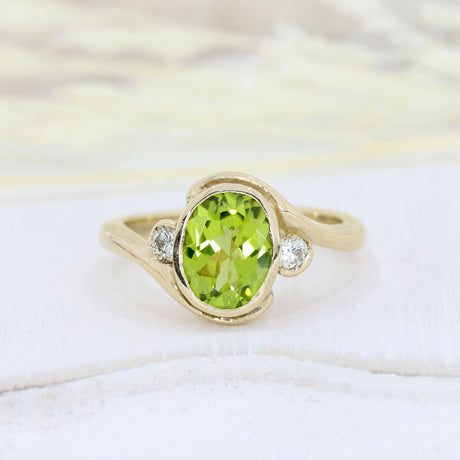 £575.00Unit price /Unavailable9ct Yellow Gold Oval Rubover Set Peridot & Round Diamond Dress Ring