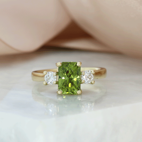 £975.00Unit price /Unavailable9ct Gold Light Green Tourmaline & Lab Grown Diamond 3 Stone Ring