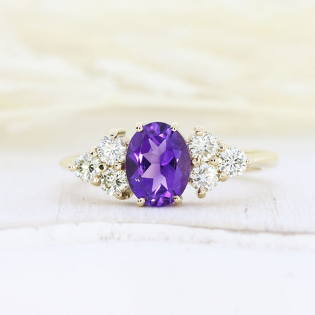 £1,250.00Unit price /UnavailablePre Owned 9ct Oval Claw Set Amethyst Dress Ring with Diamond & Amethyst Shoulders