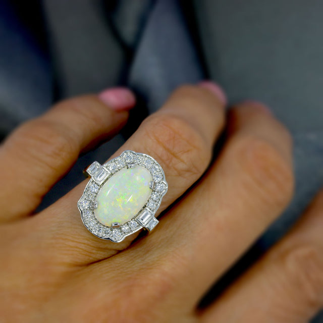 18ct Gold & Platinum Large Opal & Diamond Cluster