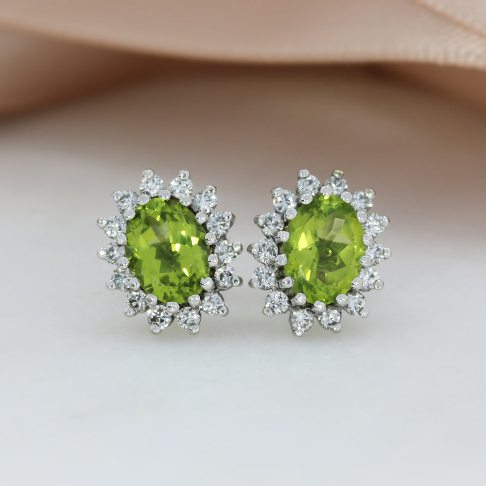 9ct White Gold Diamond and Peridot Cluster Earrings