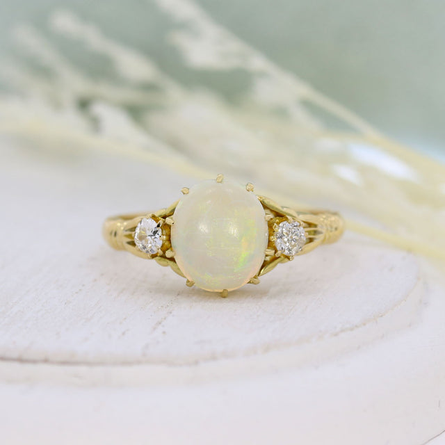 Pre Owned 18ct Yellow Gold Oval Opal & Round Diamond Ring