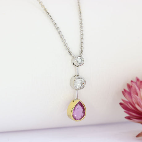 - 18ct Yellow & White Gold Pink Sapphire Drop Pendant On 18inch 18ct Chain £1,850.00Unit price /Unavailable