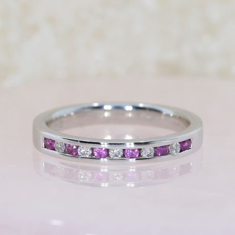 - Pre Owned 18ct White Gold Pink Sapphire & Diamond Channel Set Eternity Ring £595.00Unit price /Unavailable