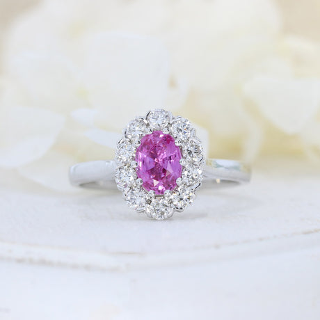 - 18ct White Gold Oval Pink Sapphire & Diamond Cluster Ring £2,495.00Unit price /Unavailable