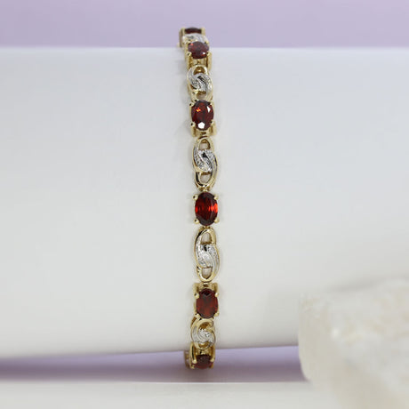 £625.00Unit price /UnavailablePre Owned 9ct Yellow Gold Garnet & Pave Set Diamond Bracelet