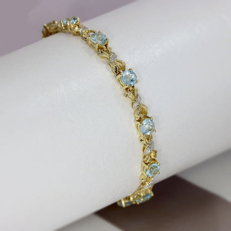£1,175.00Unit price /UnavailablePre Owned 9ct Yellow Gold Blue Topaz & Diamond Bracelet