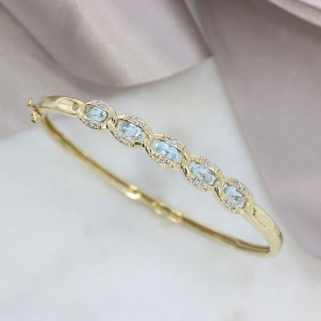 £3,895.00Unit price /UnavailablePre Owned 9ct Yellow Gold Hinged Bangle with Blue Topaz & Diamonds