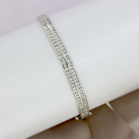 £649.00Unit price /UnavailablePre Owned 18ct White Gold Hinged Double Row Diamond Bangle Approx 1.50ct