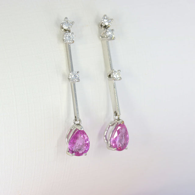Pre Owned 18ct White Gold Pink Sapphire and Diamond Drop Earrings