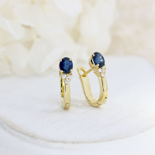 Pre Owned 18ct Yellow Gold Sapphire & Diamond Huggie Earrings
